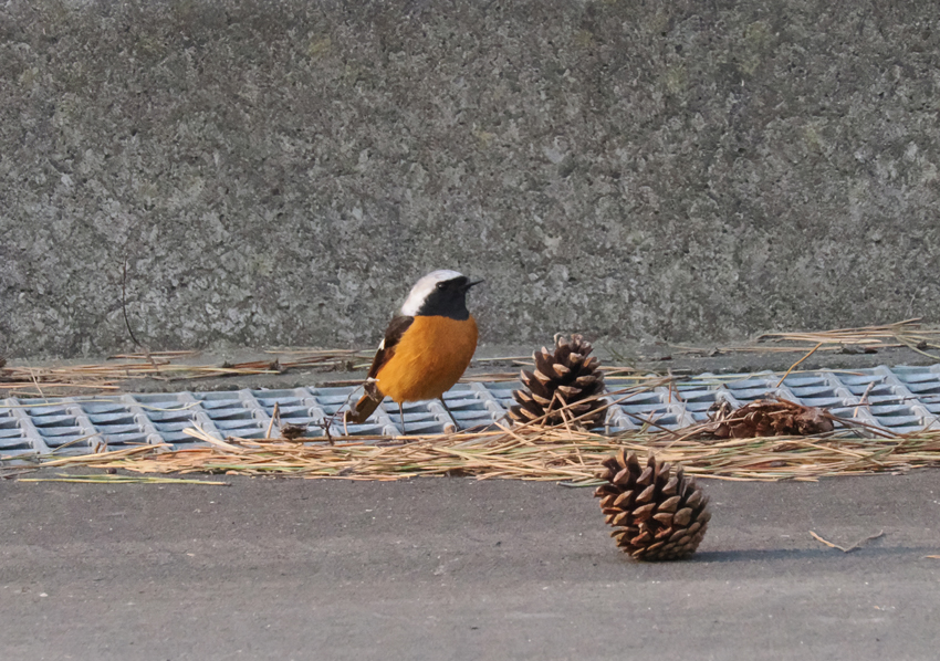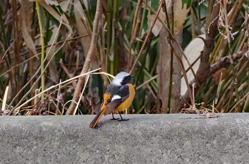 ジョウビタキはヒタキ科の冬鳥です。頭が銀色、羽が黒で体がオレンジ色の美しい鳥です。ヒッヒッと鳴きますが、これは地鳴きです。ヒタキ科のヒタキという名前はヒッヒッという地鳴きが「火を叩く」(火起こし)音に似ているところから来たそうです。ヒタキ科の仲間は他にキビタキやオオルリなどがいて、どの鳥も美しく囀りますが、ジョウビタキもきっと美しく囀るのでしょう。冬鳥なので囀りを聞くことが出来ないのが残念です。